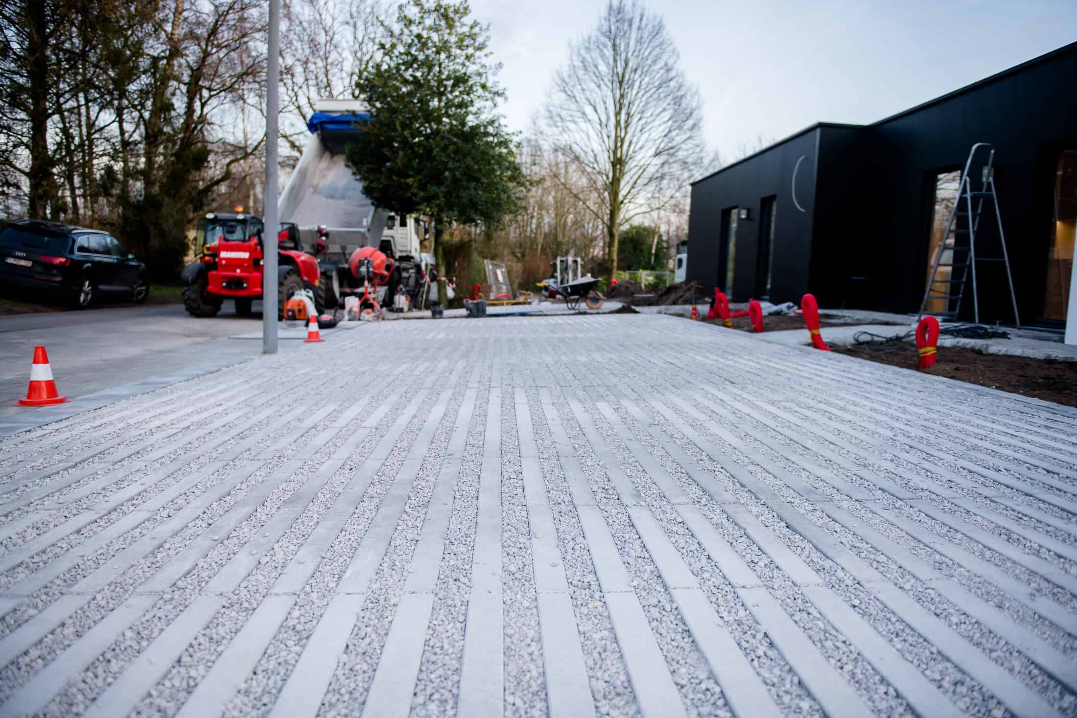 · Aanleg parking in waterdoorlatende grasdallen (vienna straight) + opgevuld met dolomiet