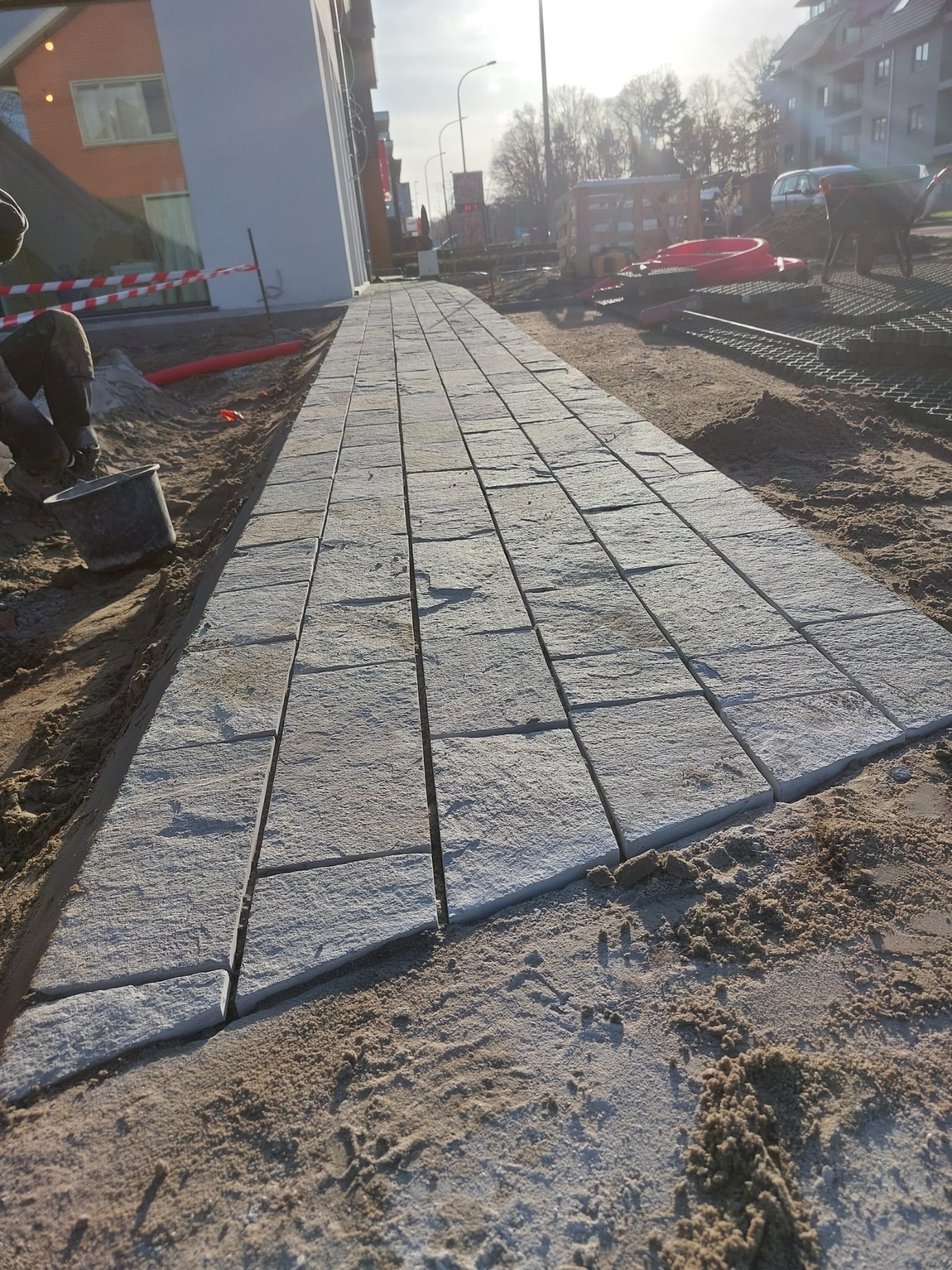 · Aanleg padjes rond gebouw in cavalas banen
